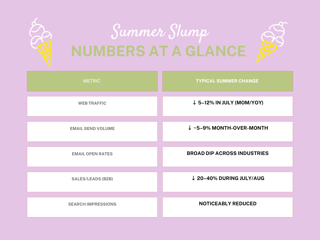 But here’s the good news: this dip doesn’t have to be a dead end. With the right summer marketing strategies, you can keep your business top of mind, even while your customers are living their best vacation lives.